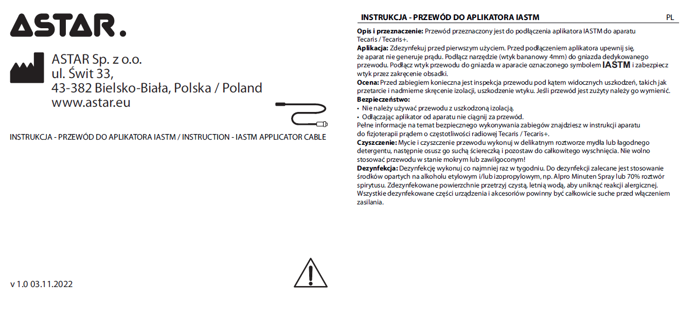 Przewód do aplikatora IASTM do fizjoterapii prądem RF